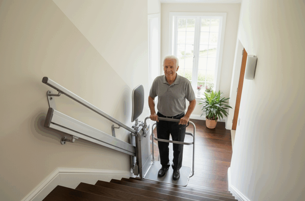 Ein Stehlift ist eine spezielle Form des Treppenlifts, die für Menschen entwickelt wurde, die Schwierigkeiten beim Treppensteigen haben, aber noch in der Lage sind, eine stehende oder halbstehende Position einzunehmen. Anders als der klassische Sitzlift benötigt ein Stehlift weniger Platz und eignet sich daher besonders gut für schmale Treppenhäuser. Der Nutzer wird dabei sicher fixiert und komfortabel die Treppe hinauf- oder hinuntergefahren.